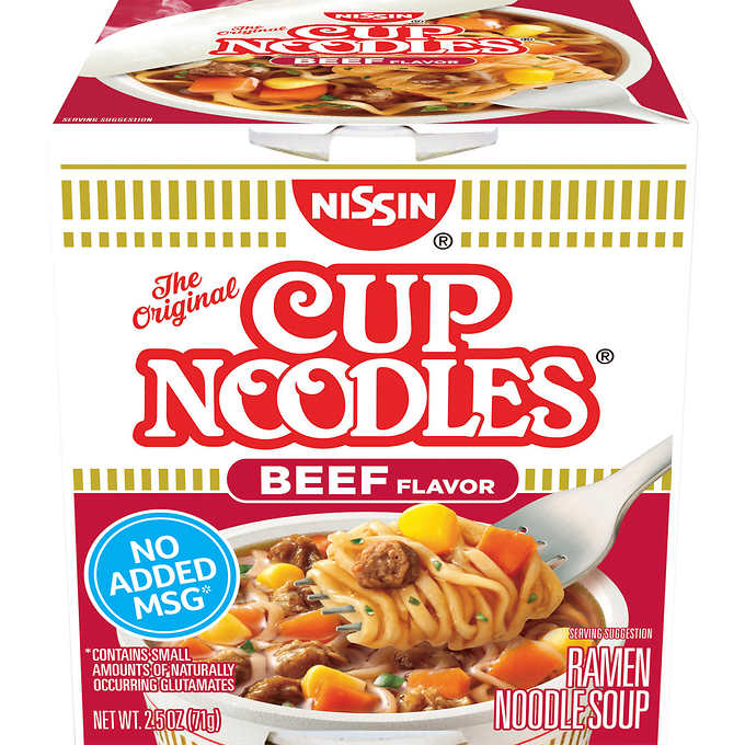 Nissin Cup Noodles Flavored Soup, Beef, 2.5 oz, 24 ct